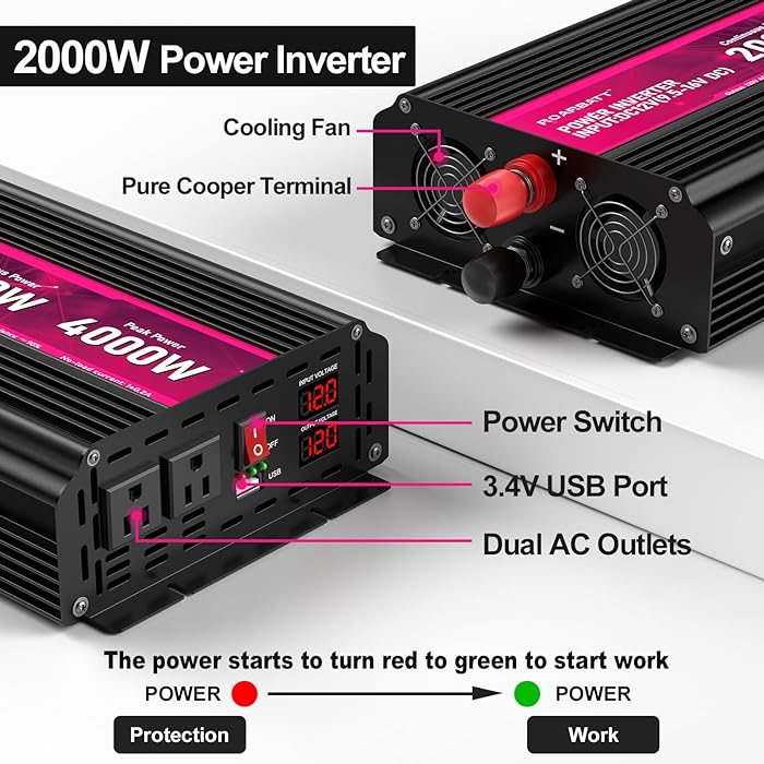 2000W Power Inverter,12V DC to AC 110V120V Peak Power 4000W with 2 AC Outlets and 2.4USB Port,LCD Display Car Inverter for Power Converter Outdoor Activities,Emergency,Vehicles Truck RV Solar System (Copy)